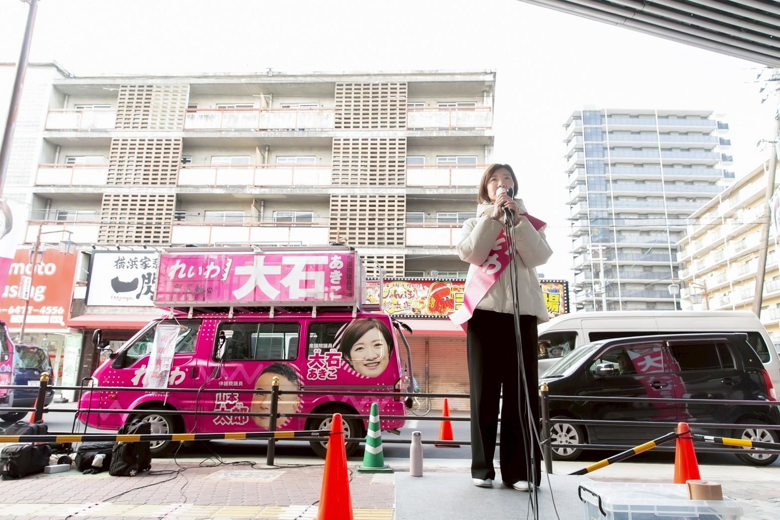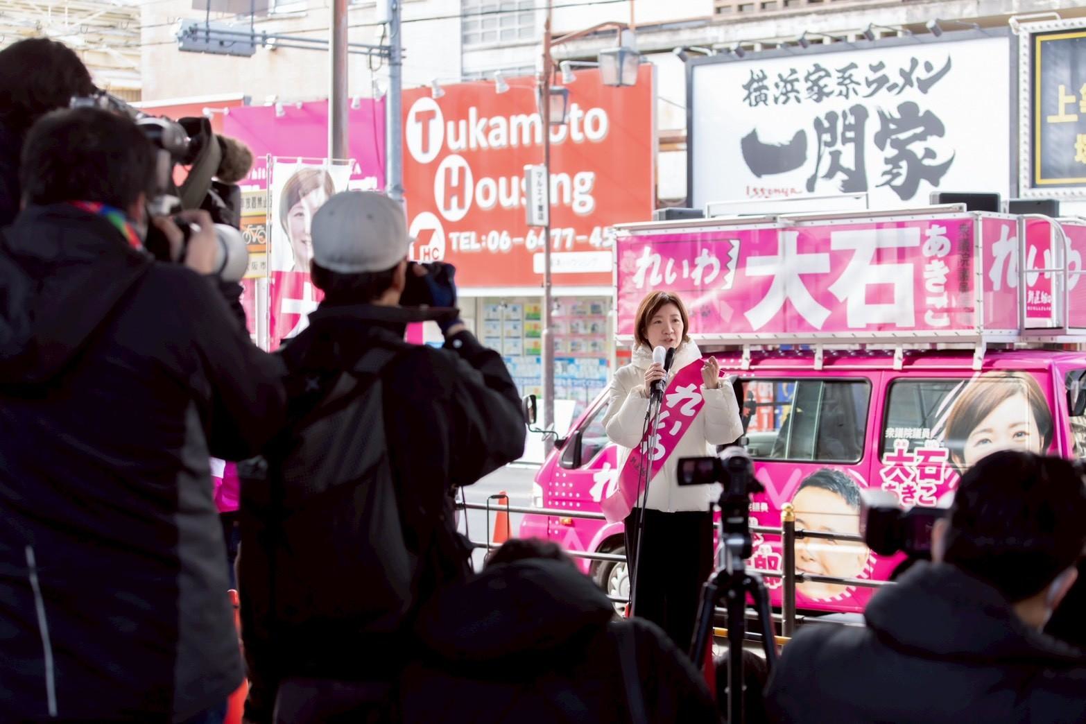 選挙が始まりました。2月7日が投開票の選挙、ぜひ有権者の方、投票行っていただきたいです。私、大石あきこと言います。れいわ新選組の共同代表をやっています。この数日間でテレビ討論ということで、党首討論がいくつかあったと思うんです。それでこの声聞いたことある方、通りがかる方でも多いんじゃないでしょうか、大石あきこがテレビ討論に出ていましたので。テレビ討論で各政党の党首が出てきますが、大石あきこのような追及というのはほぼ、どの政党もやりません。私はテレビ討論で見ていただいたらわかるように、高市総理だったりとか吉村知事だったり、そういった党首の方々に皆さんがおかしいと思ってること、裏金問題どうなったんよ、統一教会問題どうなったんよ、国保逃れどうなったんよ、その球をそのままぶつけてきました。しかし他の政党の党首はそんなことやらないんですよ。おとなしく「さぁ、あなたの選挙の政策の争点は何ですか?」「私はそうですね、これの減税をいたします」みたいなプレゼン大会にしかならないんですよ。それは皆さんが多くの方が目にしたこの数日でのテレビ討論でもそうですし、国会の中でもそうです。国会の中も茶番。大いなるプレゼン大会、大いなるプレゼン大会に巻き込んで、こんな選挙一発でも800億円をかけて、そして国会の中では年がら年中、高級な官僚とか国家公務員の力をたくさん使って、各政党がプレゼン大会に明け暮れてる。皆さんのほうなんか見てませんよ、国会は。ほとんどの政党は。私は4年間、国会議員をしてきて心を込めて質疑をしてきたつもりですが、もう本当に見てて苦しいですよ。皆さんのための質疑なんかほとんどの政党はしてませんよ。自分たちを着飾って粉飾させて、選挙のときだけ「減税やります」って言うとけば、有権者も半分は投票は行かないし、自分たちの組織とかお金に関係した人たちだけ投票行けばそれでまた自分ら勝てるし。そういうビジネス、そういうプロの政治屋、それが国会を埋め尽くしてるんですよ。私は4年間、それを見てきて本当に悔しくて、皆さんにそれを知ってほしくて。でもそれはメディアでも流されないし、そして多くの方も無関心です。国会の大いなるプレゼン大会、やってます感。「私たちはあなたのために闘います」って言って、そんなん心なんか、魂なんか入ってませんよ。それをぜひ皆さんに見抜いていただきたい。心があるのは魂があるのは誰なのか、れいわ新選組です。この大阪5区で言えば、私、大石あきこです。ぜひ見抜いていただいて、消費税廃止を始めとして、あなたが、この国を守るとはあなたを守ることから始まるんだ。消費税廃止を始めとして、本気の経済政策。経済的に一部の上の財界とかグローバル資本のための経済じゃなくて、あなたのための、若い人もお年寄りも胸張って人生を歩めるための景気回復、経済対策、そのパッケージを用意してれいわ新選組、この大阪5区では大石あきこ、選挙に挑んでいきます。ぜひ皆さん、投票行ってください。大阪5区では「大石あきこ」。比例は「れいわ」、比例は「れいわ」にあなたの1票をお願いします。れいわ新選組の大石あきこでした。ありがとうございました。