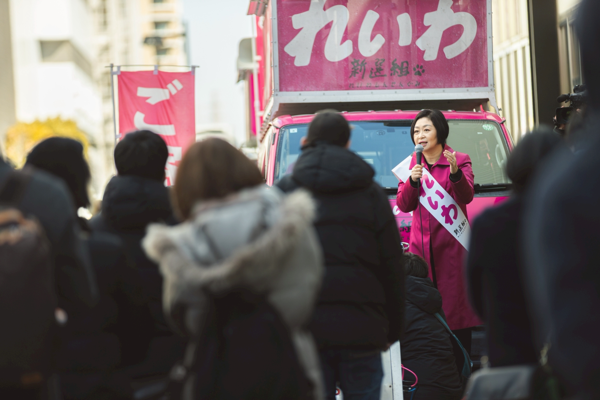 では、まず私からのお訴えをさせていただきましたけれども、ここから、このあと記者の皆さまからのご質問をいただく時間にしたいと思います。15分くらいですけれども、この場所でマイクを使って行いますので、ご質問のある方は挙手をお願いいたします。その前にですね、すいません、先にインフォメーションさせてください。2つあります。まずはご寄附のお願いなんです。大変心苦しいですけれども、今回の選挙、さまざまなことがあっての準備で、今日ようやく迎えることができました。ブースのほうで受け付けておりますので、お時間のない方はれいわ新選組のWebサイトからもご協力いただくことができます。ぜひお力をお貸しください。よろしくお願いいたします。そして2つ目のお願いは何と言っても比例は「れいわ」、比例は「れいわ」とお書きいただきたいんです。既にチラシをお持ちいただいてる皆さん、ありがとうございます。先ほどご紹介いたしました、有野洋輔さん、そしてもう1人、山本ジョージさんが比例の候補として立候補しておりますし、何と言っても神奈川といえば三好りょうですよね。三好りょう、三好りょうを私たちの仲間を神奈川15区から何としても、あ、ありがとうございます。応援の声ありがとうございます。何としても当選をさせていく選挙にしたいと思います。そのためには神奈川県で比例を数をもっともっと増やさなきゃいけません。ぜひ、比例は「れいわ」。神奈川15区の方は小選挙区は「三好りょう」、比例は「れいわ」。2回書くことができます。そして15区以外の方は、比例は「れいわ」、比例は「れいわ」で。広く広く、今日から12日間、皆さんの声、そして皆さんのチラシ、皆さんの足で一緒に、「比例はれいわ」を拡めていただくよう心からお願いを申し上げます。ありがとうございます。頑張りましょう。それでは記者さんからのご質問受けたいと思います。はい。