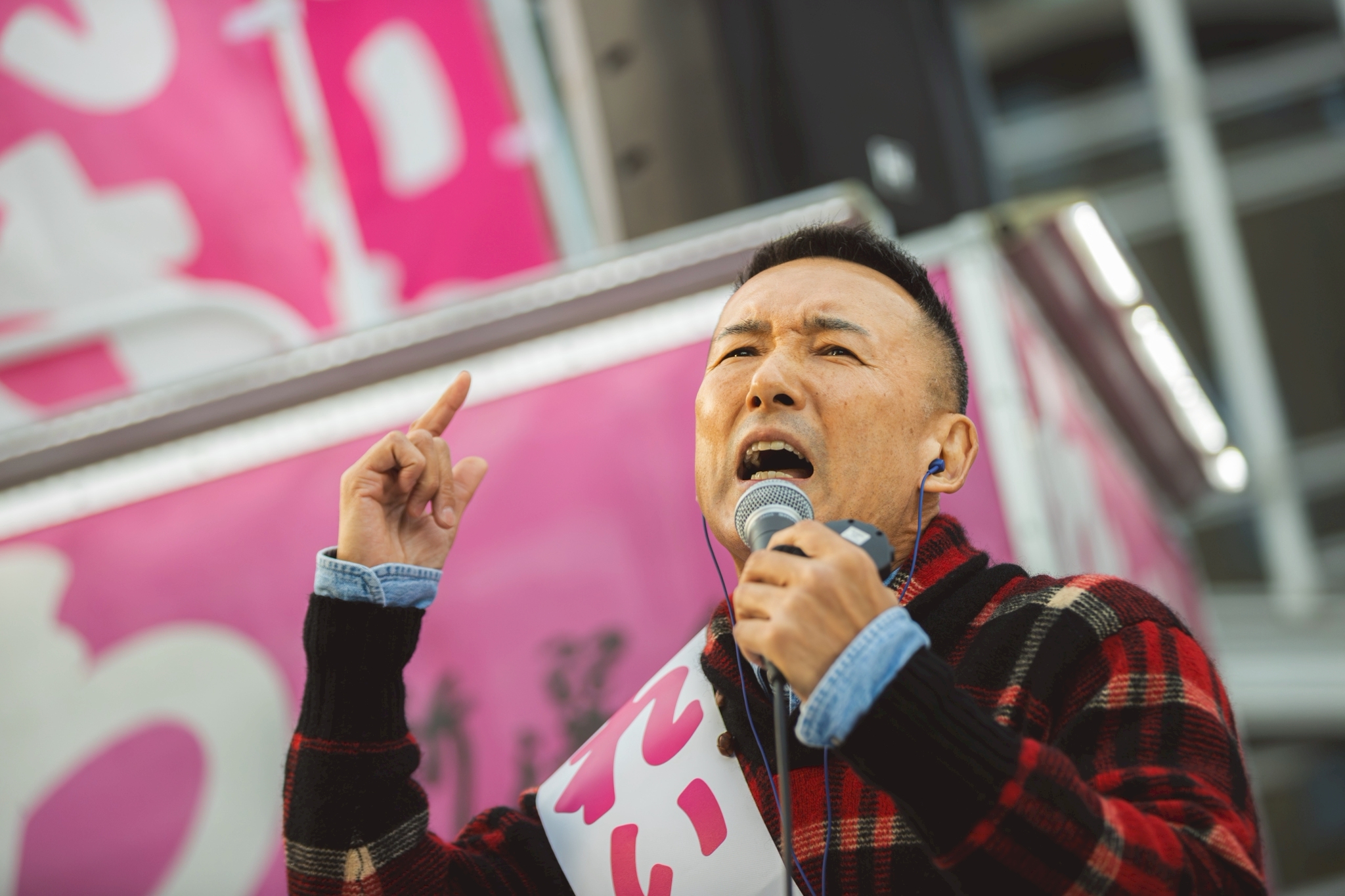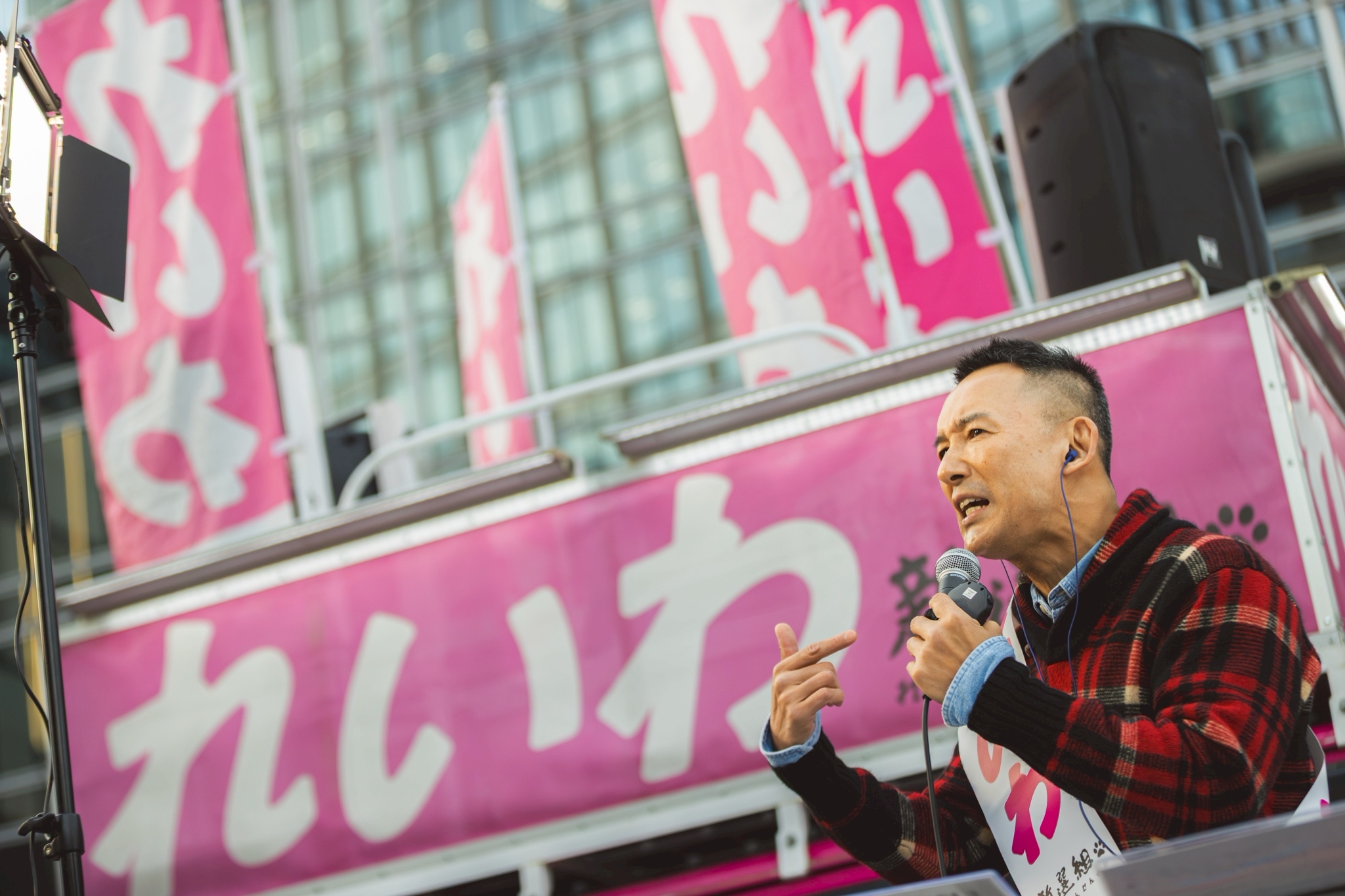 そして、さまざま言いましたけれども、一番確実に横に拡げる方法はピンクの投票用紙が比例。比例は全国どこからでも「れいわ」と書ける。「れいわ」と書いてくれないかということを、あなたの周辺の人たちにお願いできないでしょうか。それを確実にしていただけないでしょうか。あなたからいただける1票、こんな尊いものはない。でもその1票じゃ、ひっくり返っていかないんです。例えばですけれど選挙が始まってすぐ、いろんな報道でれいわ新選組今回の選挙において議席獲得難しいっていうような報道が一斉に流れたんですね。嫌がらせですよ。その報道を受け取った人たちは、じゃあ、今回れいわに投票してもしょうがないか。そう思っちゃうんですね。そして今になって、その議席獲得は、できないというところからどこまできたか。2から6議席っていう予測に変わってるんですよ。情報変わっちゃってんですよ。いい加減にしろよ、マスコミ。資本家によってコントロールされるのがテレビなどのメディア。当たり前です。彼らにとっての神様は企業です。大企業です。スポンサーをしてくれる。広告宣伝費をくれる。そういったものたちの意向に沿うようなことをやり続けるというのが彼らの定めなんですよ。だって慈善事業じゃないからね。商業主義に乗っとったら、そうなっちゃうのは当たり前なんですよ。話戻ります。この現状は変わってきている。議席獲得無理? いいえ。2から6まで来た。だったら6以上を目指せるようにお力を貸していただけないですか。衆議院の予算委員会、5議席ないと獲得できない。つまりは、テレビを通して政府に対しての不都合な真実、そして世の中に対して隠されていることをテレビで暴露して国民に知っていただき、そして国民と一緒にムーブメントをつくっていく。それを拡げていくという活動、非常に重要なんですね。れいわ新選組を、予算委員会、失わないように、是非お力添えをいただきたい。最大が6だっつってるんだったら、6以上を獲得できるというような、その草の根の力を見せてやる。そんなところだと思っています。お力を貸してください。よろしくお願いいたします。あなたの周辺に比例は「れいわ」、比例は「れいわ」で拡げてください。よろしくお願いいたします。大きな音で失礼いたしました。ありがとうございます。